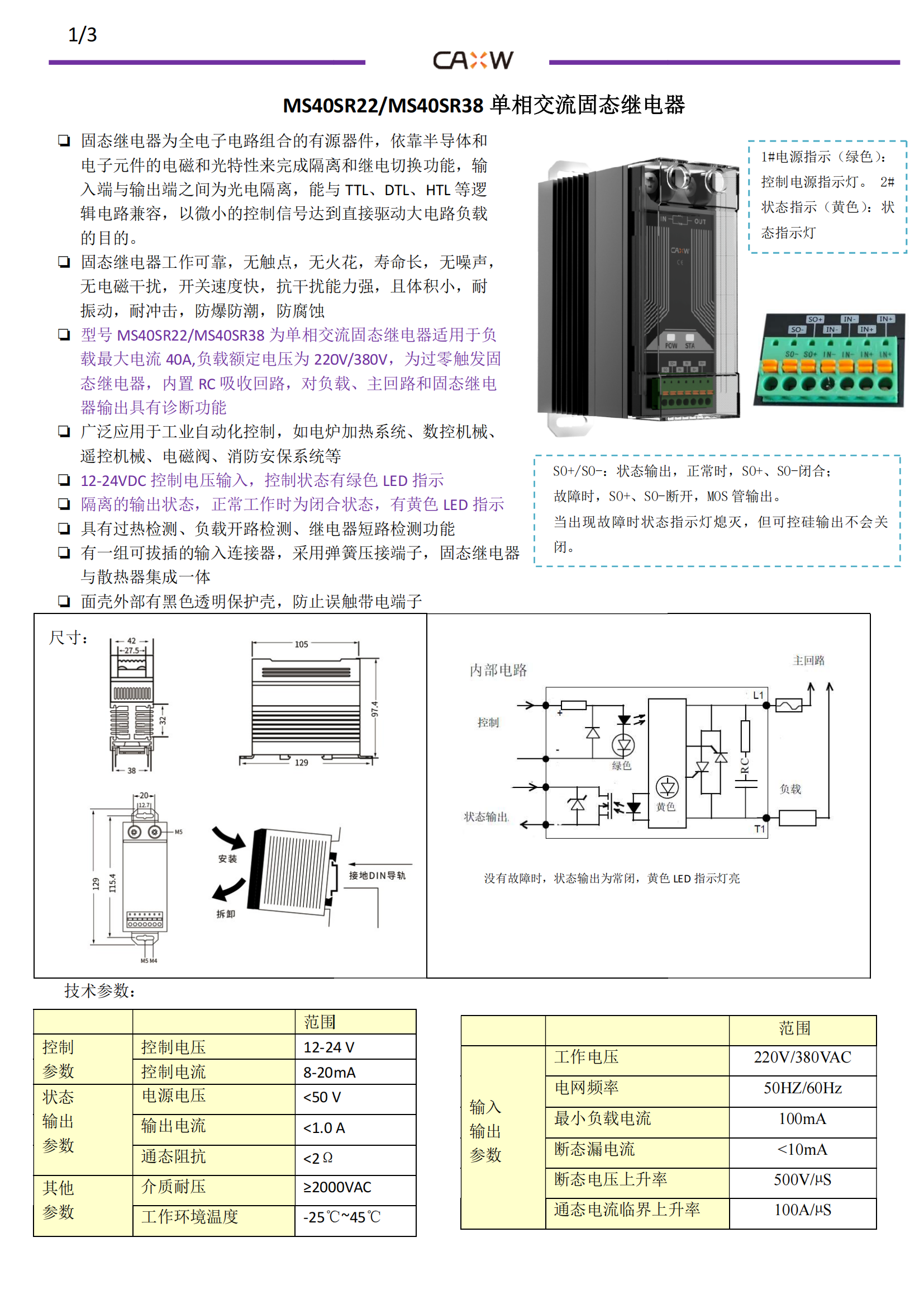 MS40SR單相交流固態(tài)繼電器說明書(矽微)